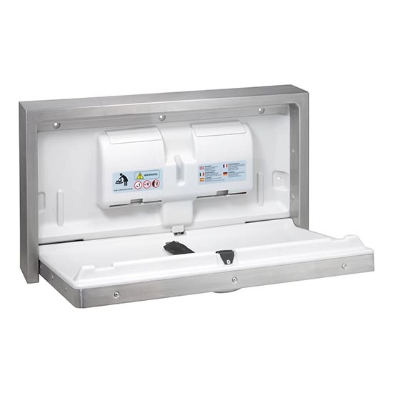 • Wandgemonteerde verschoningsunit met afmetingen 90 x 52 cm, ideaal voor openbare ruimtes.