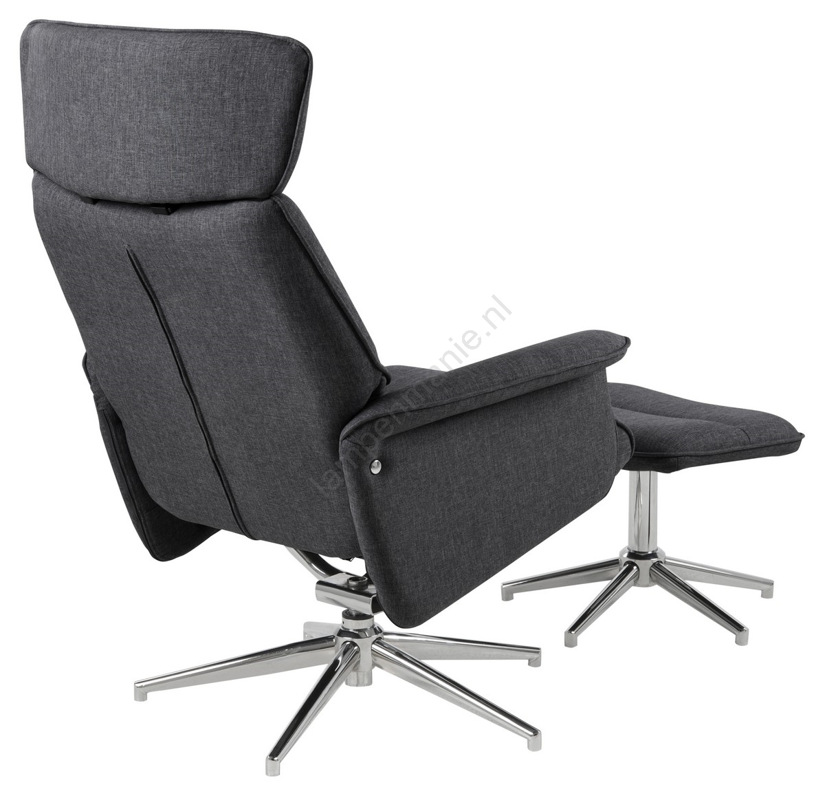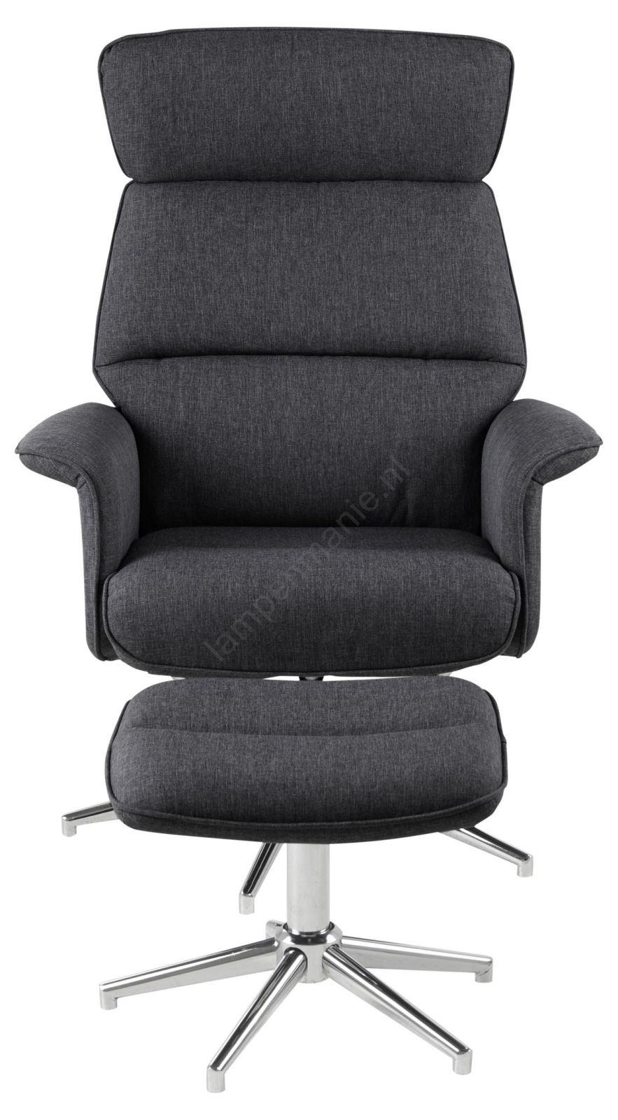 • Donkergrijze Calmeo stof, basis van chroomstaal.