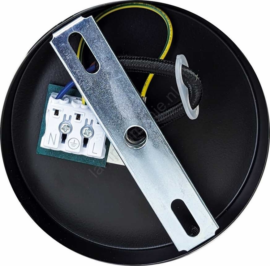 • Plafond-/wandbeugel met verstelbare montage in zwarte kleur met geïntegreerde schroefloze klem.
