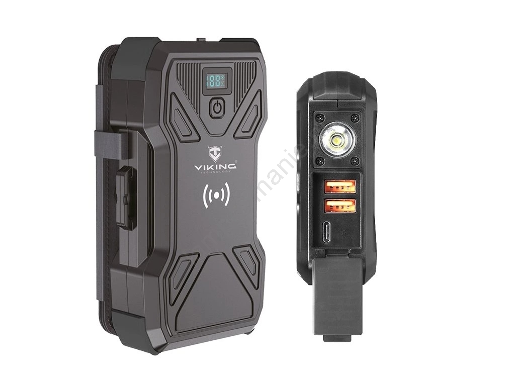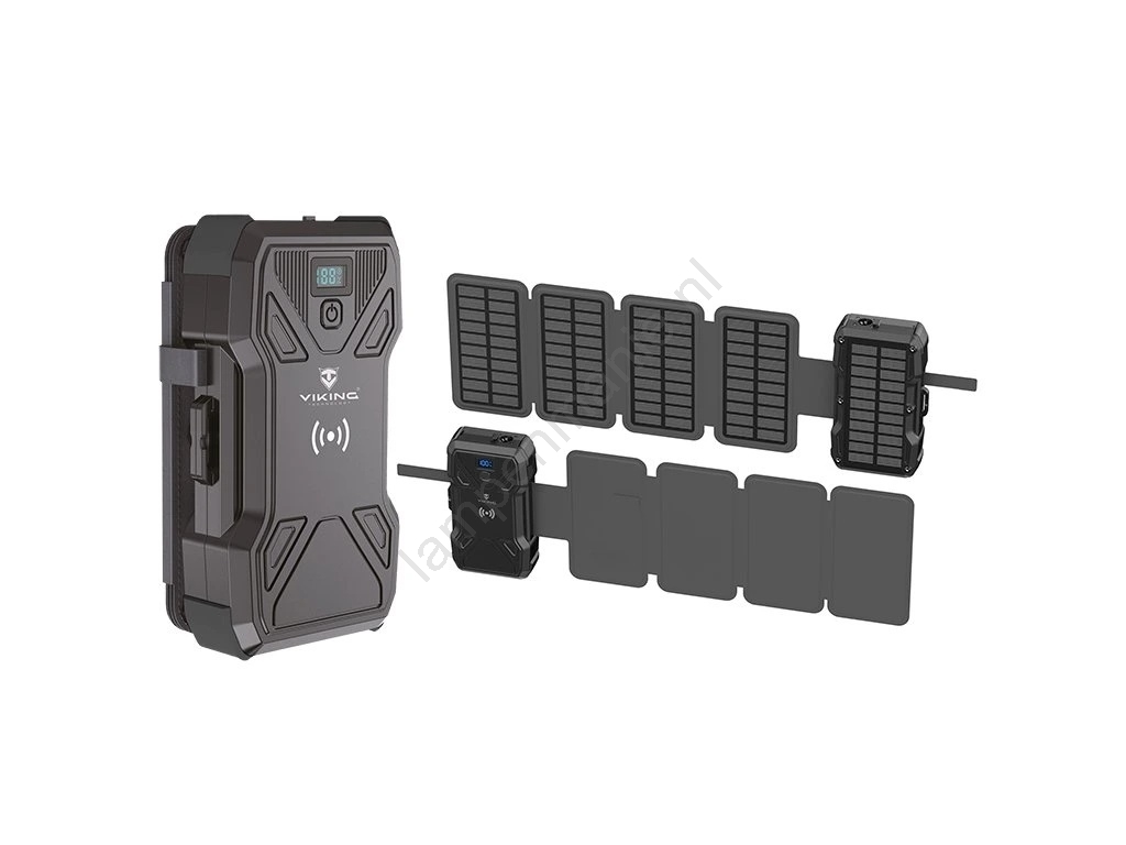Viking - powerbank met LED-zaklamp, draadloos opladen en zonnepaneel, Power Delivery 22,5 W / 30000 mAh