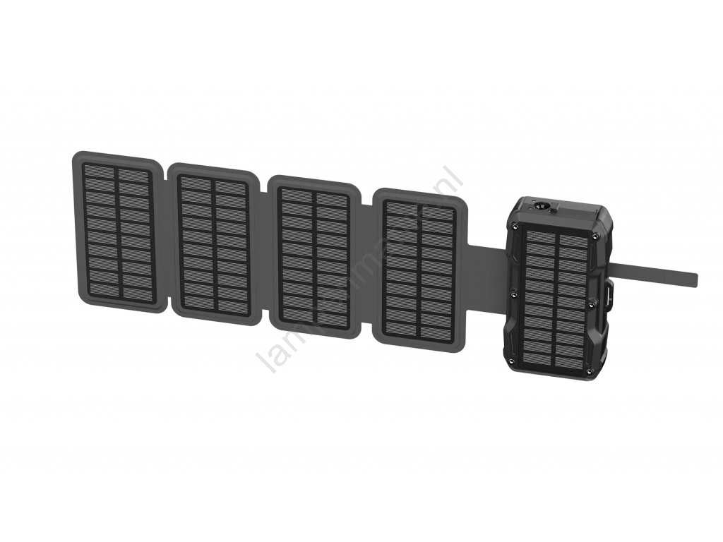 • Dankzij het innovatieve uitklapbare zonnepaneel kunt u uw apparaten opladen met zonlicht, zodat uw telefoon, tablet of andere elektronica altijd volledig opgeladen is.