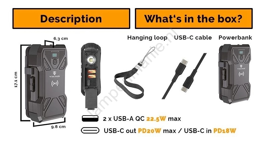 • U kunt de powerbank zelf snel opladen via de USB-C-ingang (PD 18W max).
