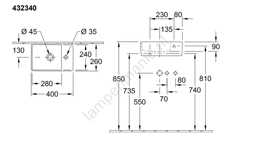 Villeroy & Boch 43234001 - Wandgemonteerde wastafel MEMENTO 40x26 cm keramiek/wit