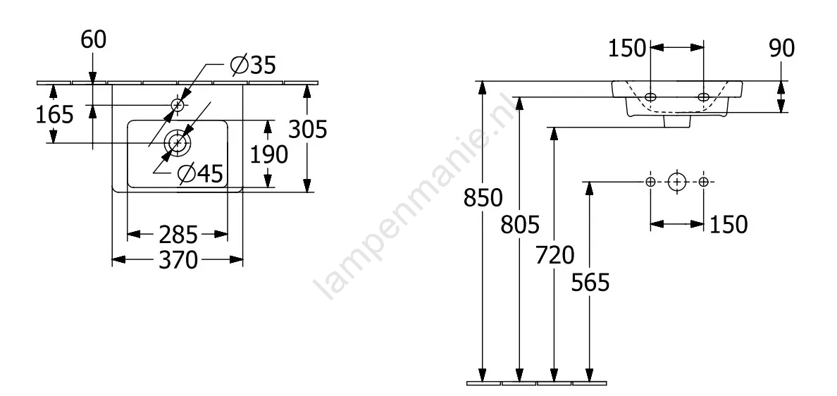 Villeroy & Boch 43703701 - Hangende wastafel SUBWAY 37x30,5 cm keramiek/wit
