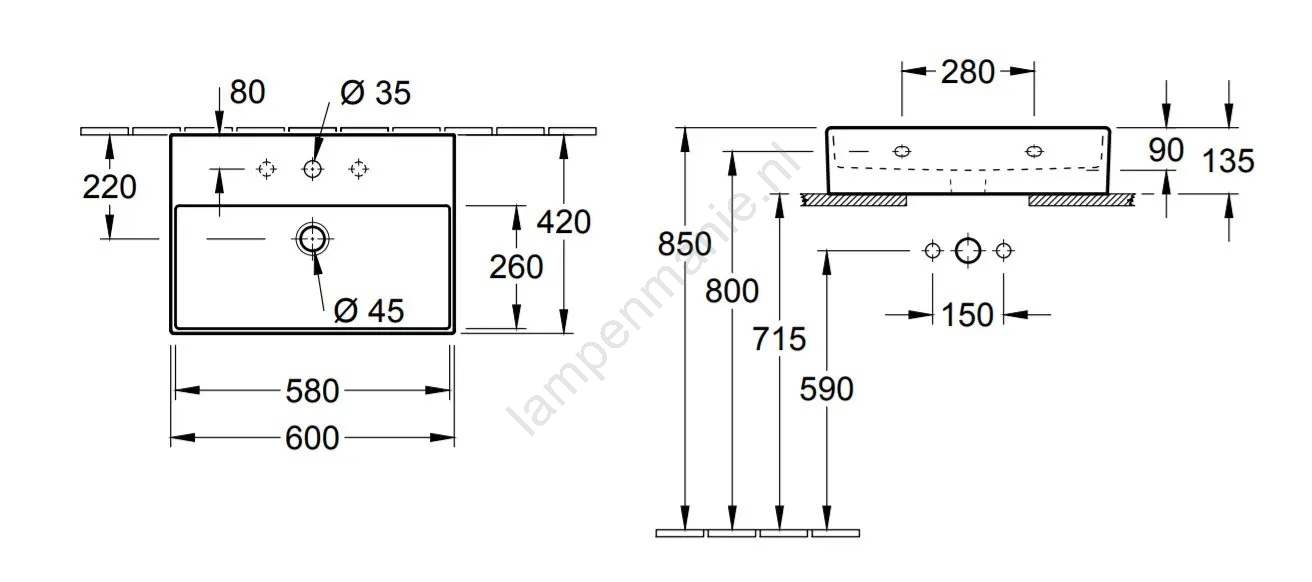 Villeroy & Boch 4A226G01 - Wand-/opbouwwastafel MEMENTO 60x42 cm keramiek/wit