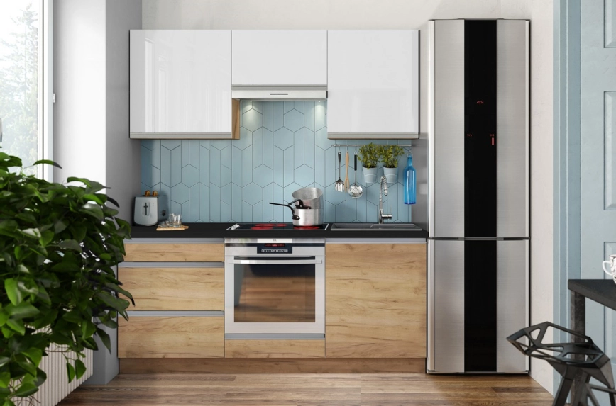 • Keukenblok MARINA 180 cm craft eik/hoogglans wit