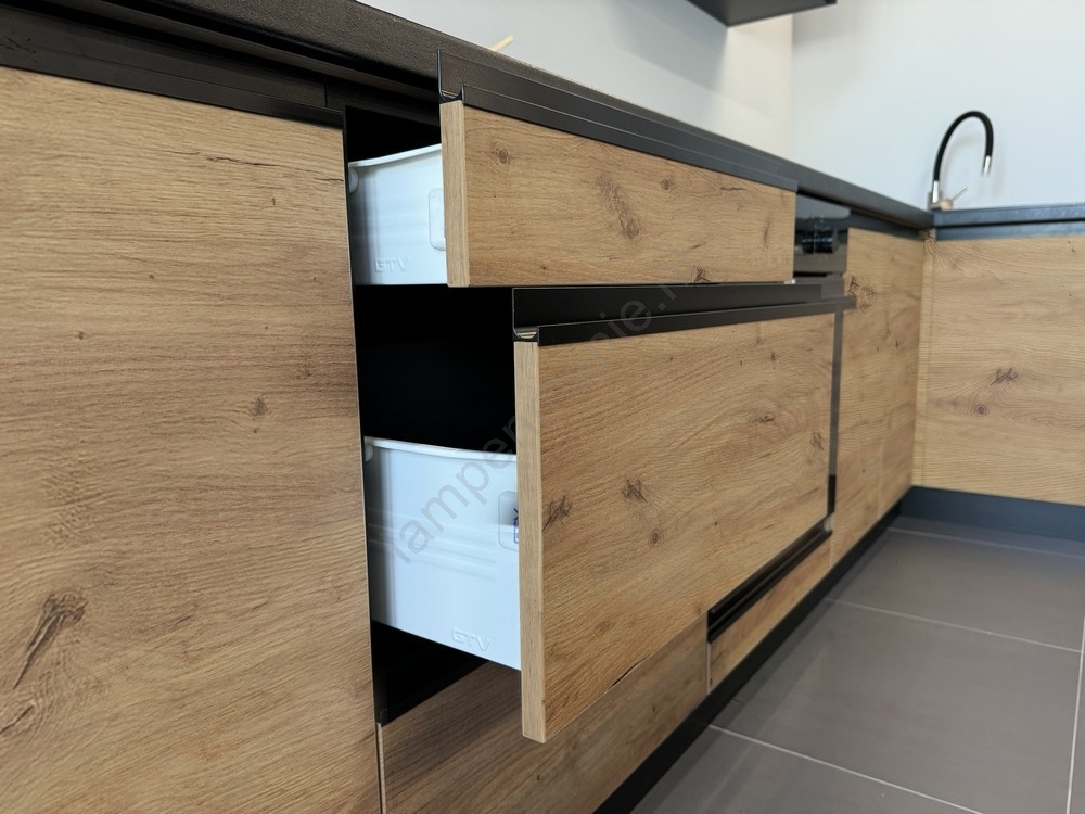 • Boven kasten zijn voorzien van gasveren, in de lades zijn hoogwaardige ingebouwde metalengeleiders.