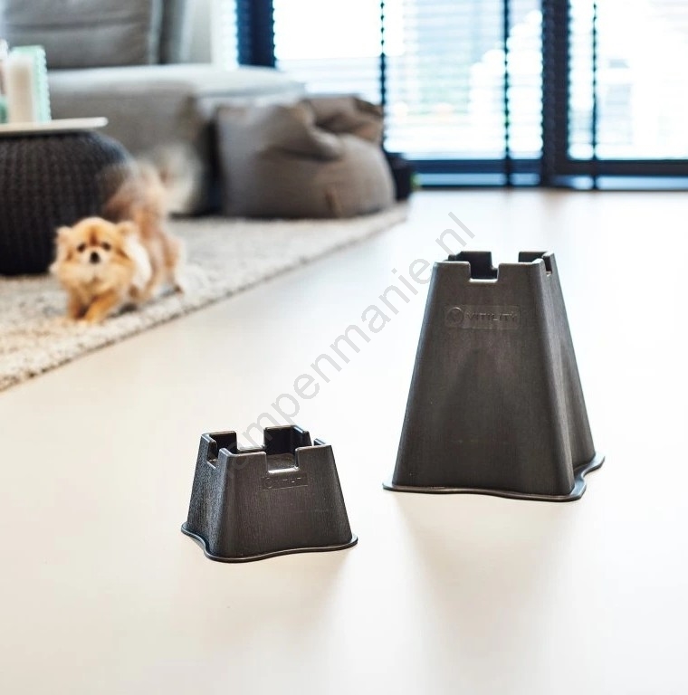 • Ze worden geleverd als set van vier stuks, om onder de bedpoten te plaatsen.