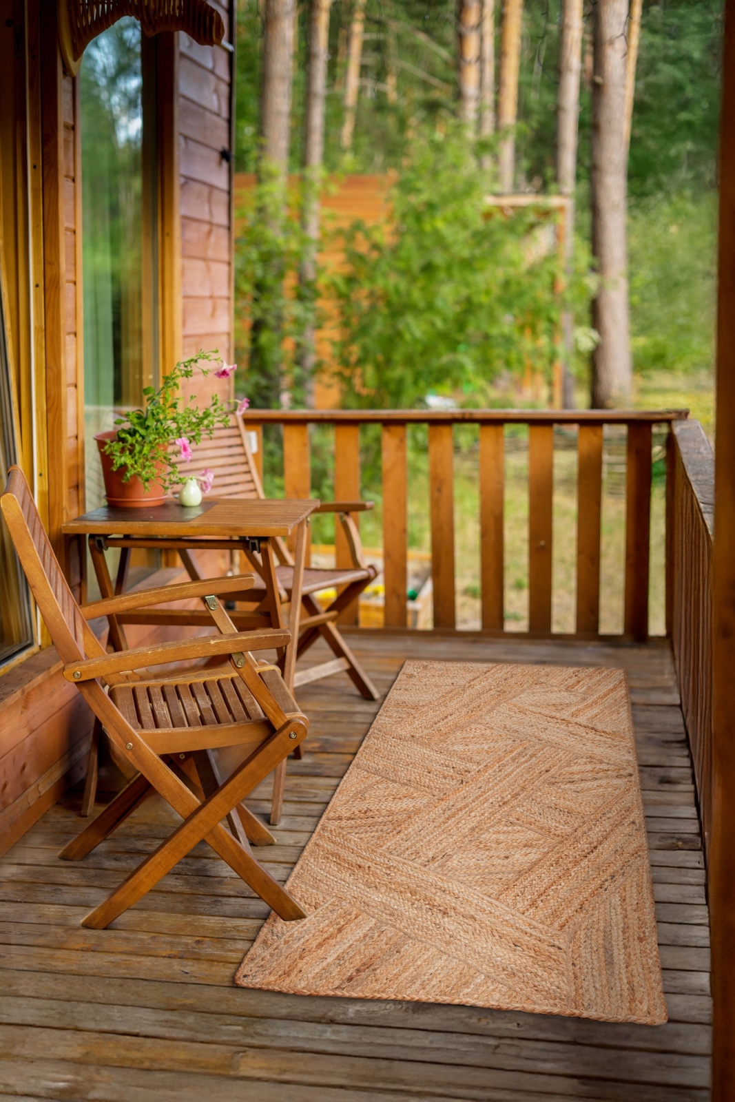 • Uniek vloerkleed van natuurlijke jute combineert eenvoud, elegantie en functionaliteit.