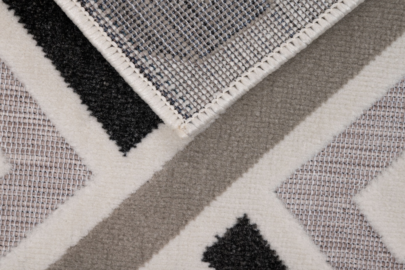 • De pool heeft een modern geometrisch patroon en varieert in hoogte, wat het vloerkleed een 3D-effect geeft.