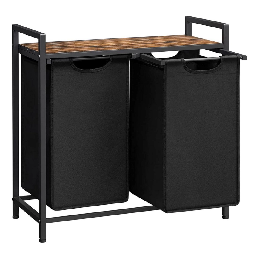 • 2 zakken, 1 plank – Sorteer uw was in de twee stoffen zakken (46 l per zak) en plaats wasmiddel, wasverzachter en andere spullen op de plank.