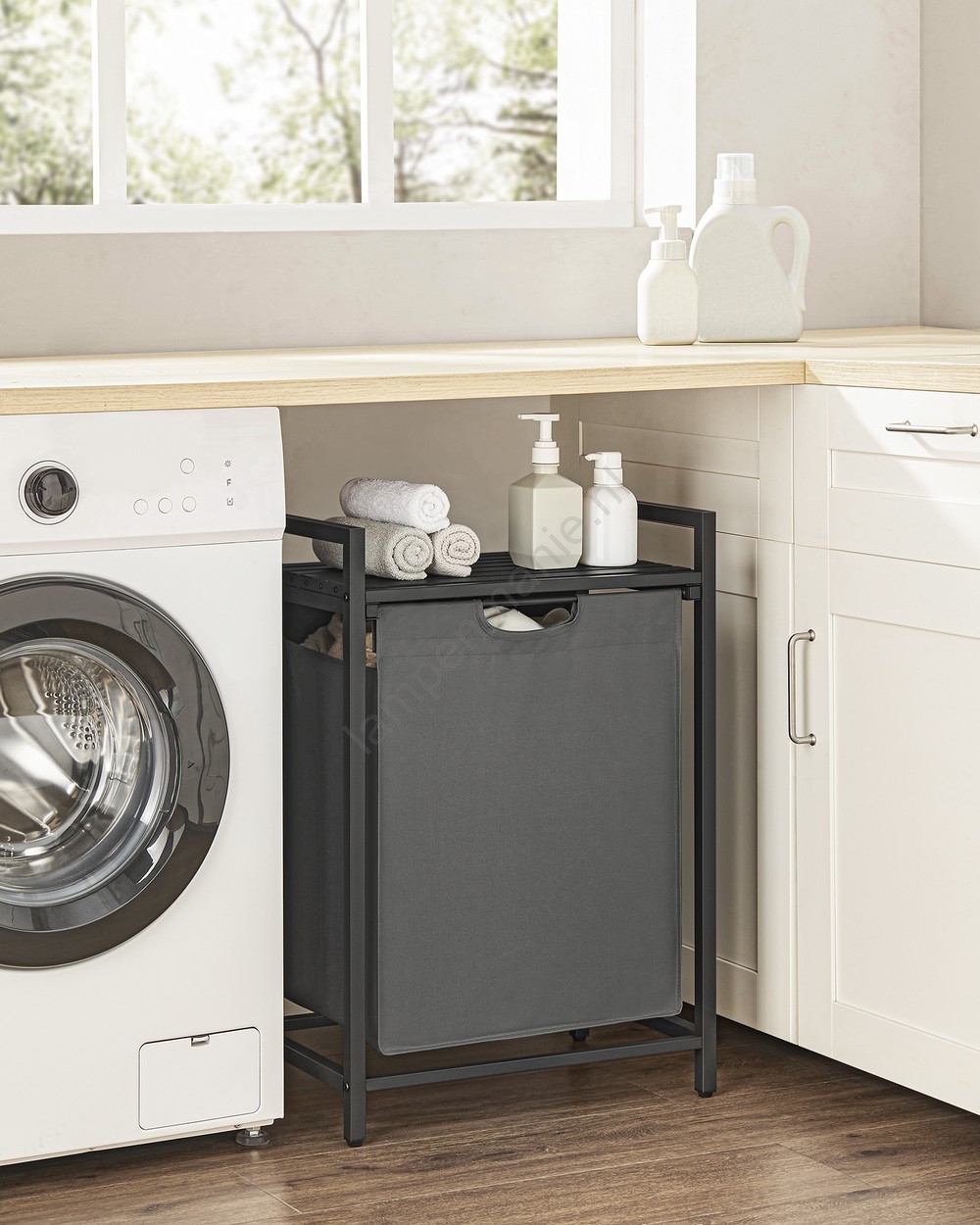 • 1 zak, 1 plank – Berg uw was op in de stofzak (65 l) en plaats wasmiddelen, wasverzachter en andere spullen op het plankje erboven.