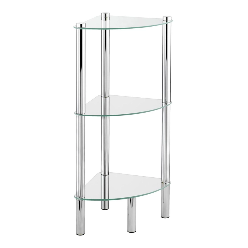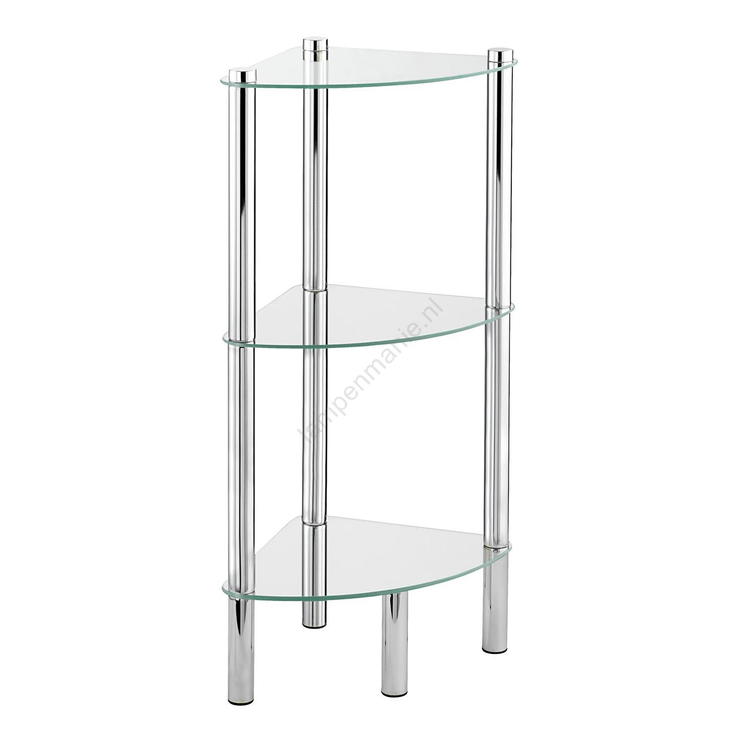 • Elegant hoekrek met een moderne uitstraling van roestvrij staal en helder glas.