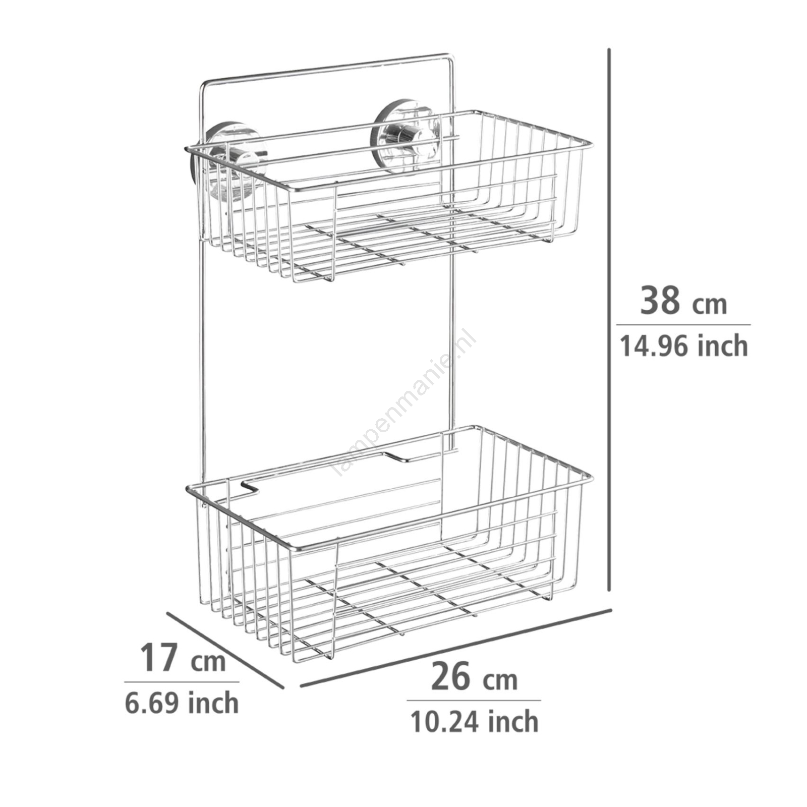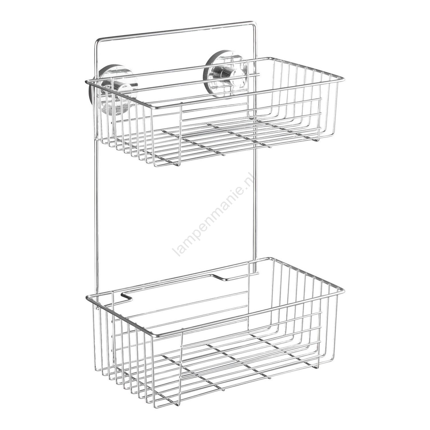 • Tweelaags wandmand voor ruimtebesparende opberging van badkamerartikelen.