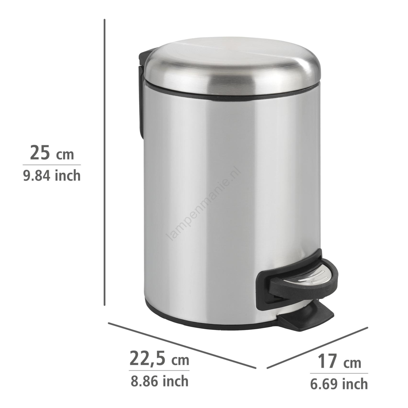 WENKO 22829100 - Prullenbak LEMAN 17x25 cm roestvrij staal/satijn/zwart