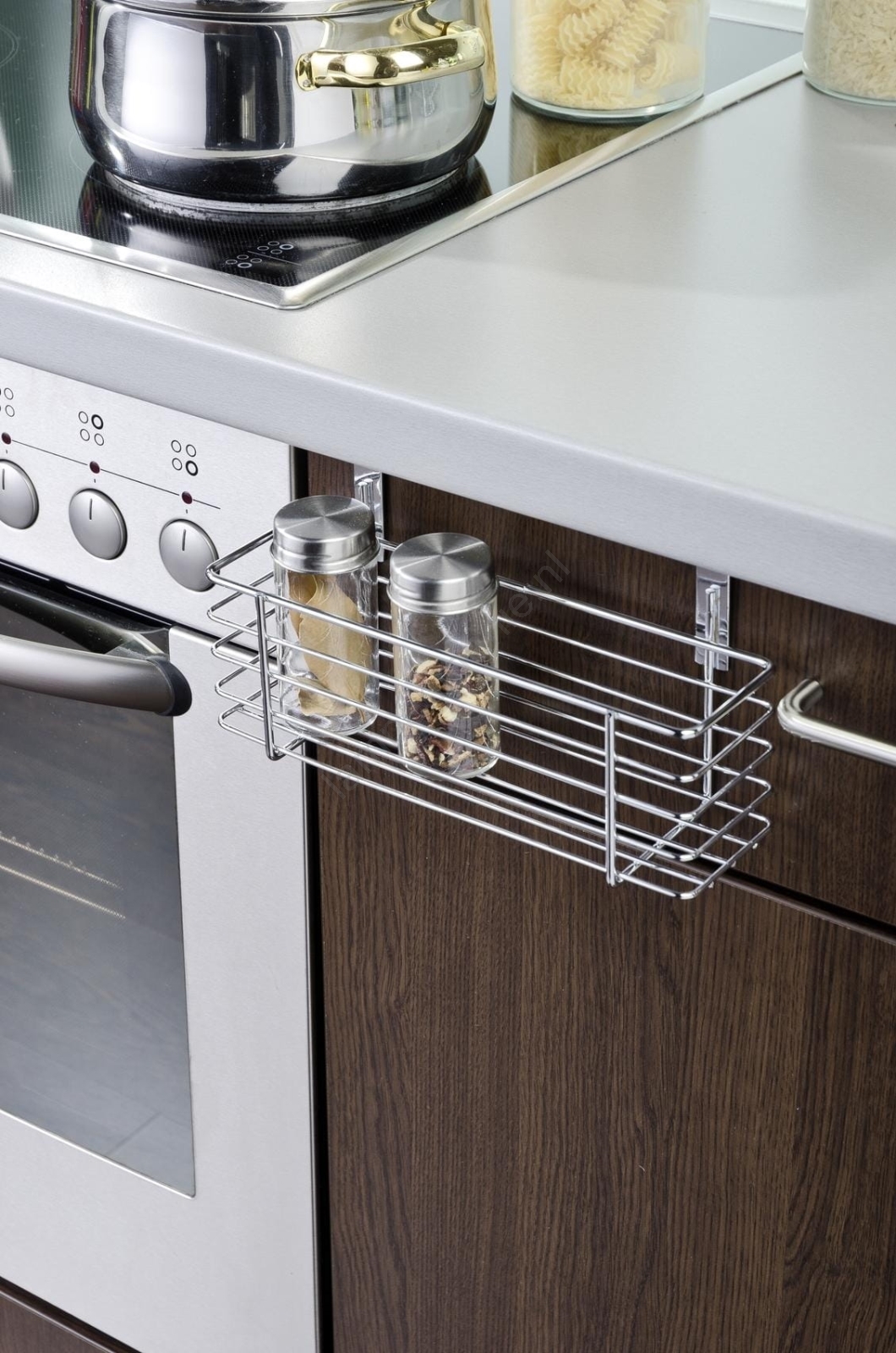 • Praktisch hangmandje voor het opbergen van kleinere keukenbenodigdheden.