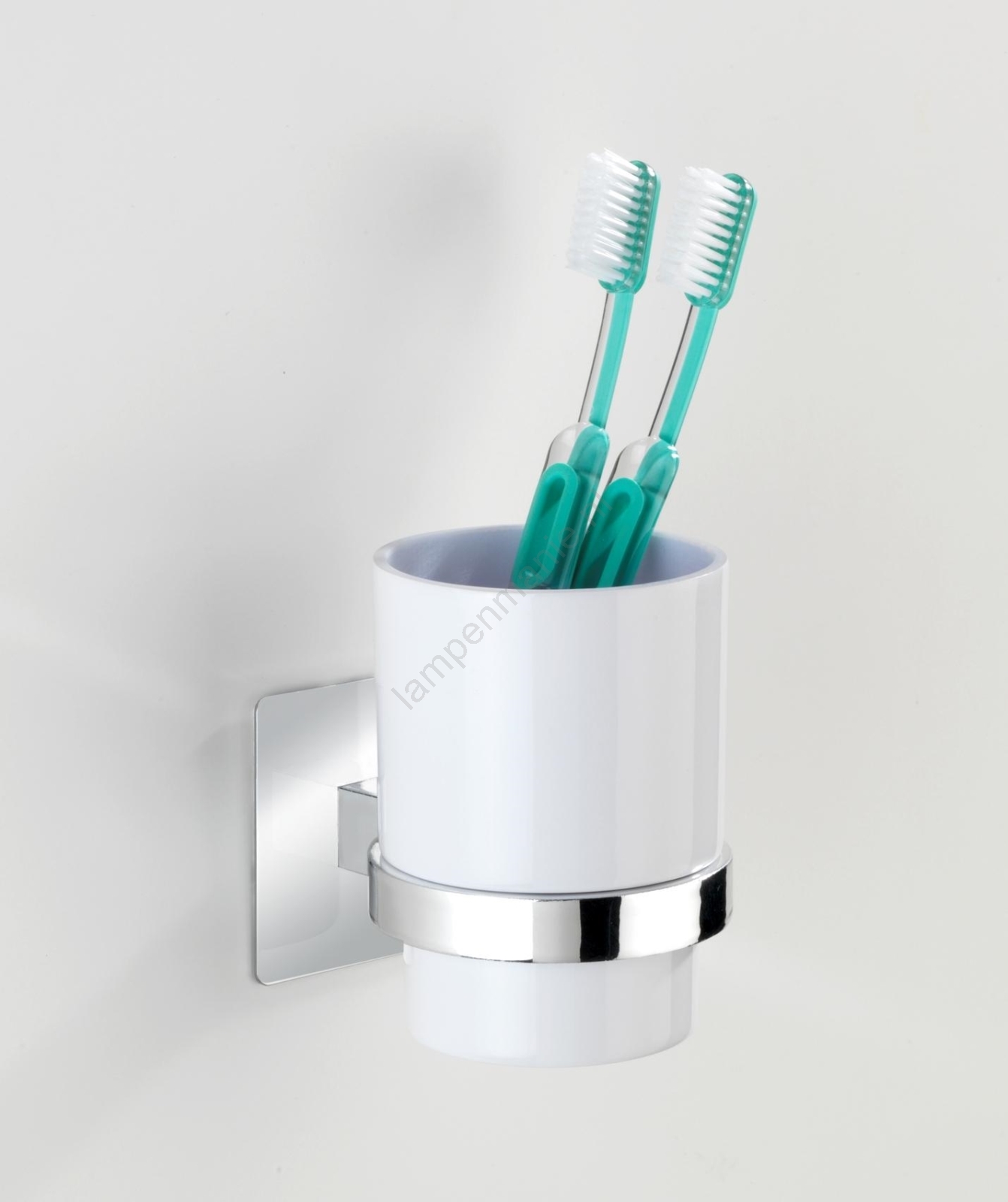 WENKO 23847800-Tandenborstelbeker TURBO-LOC QUADRO ED. 7x9,5 cm glanzend chroom/wit