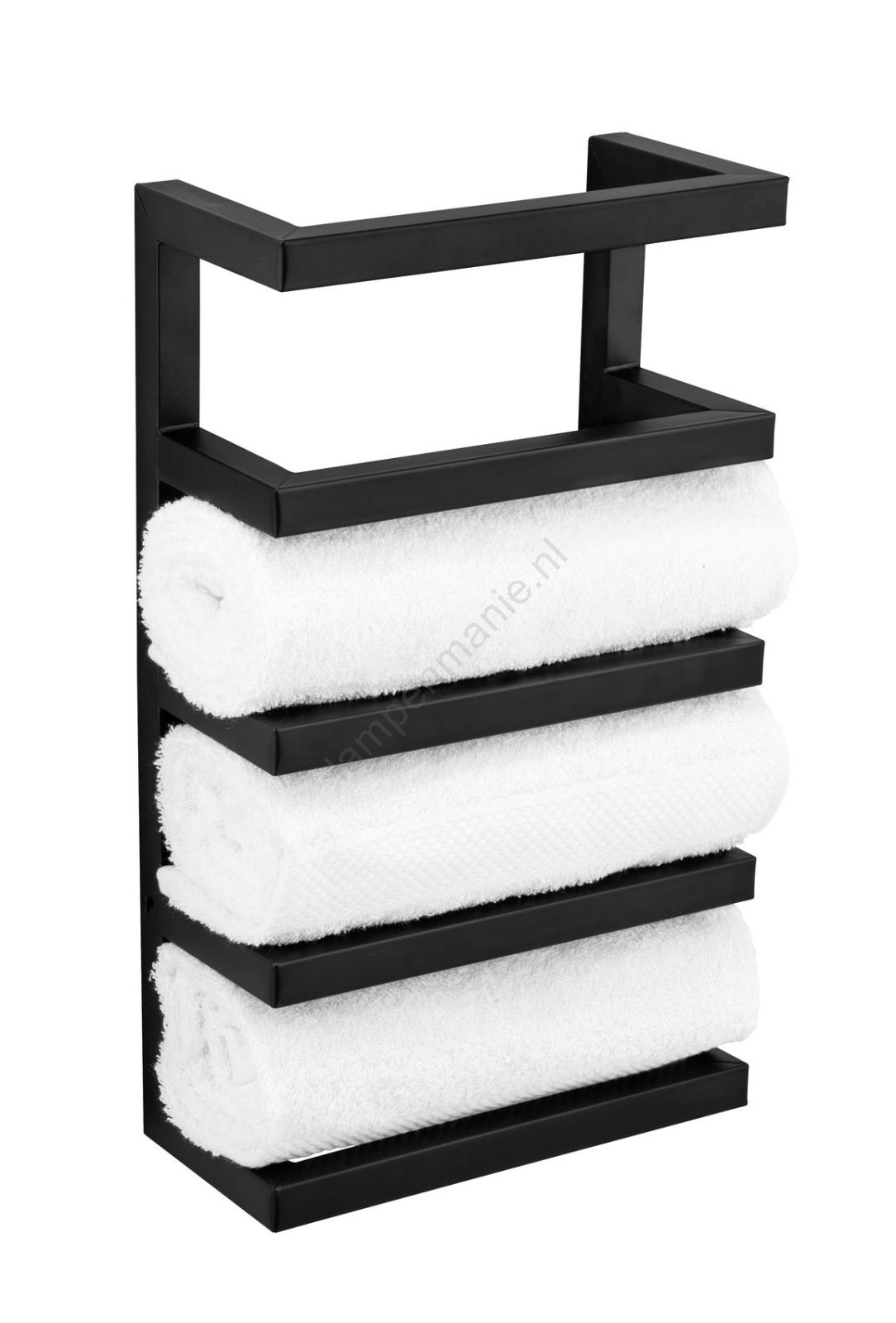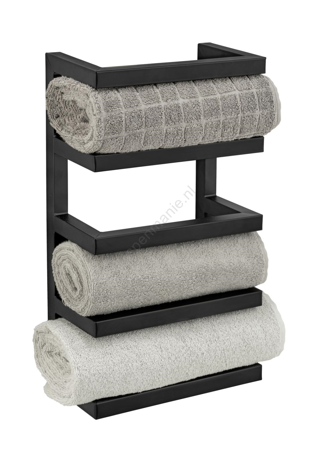• Stijlvolle wandhouder voor handdoeken in mat zwart.