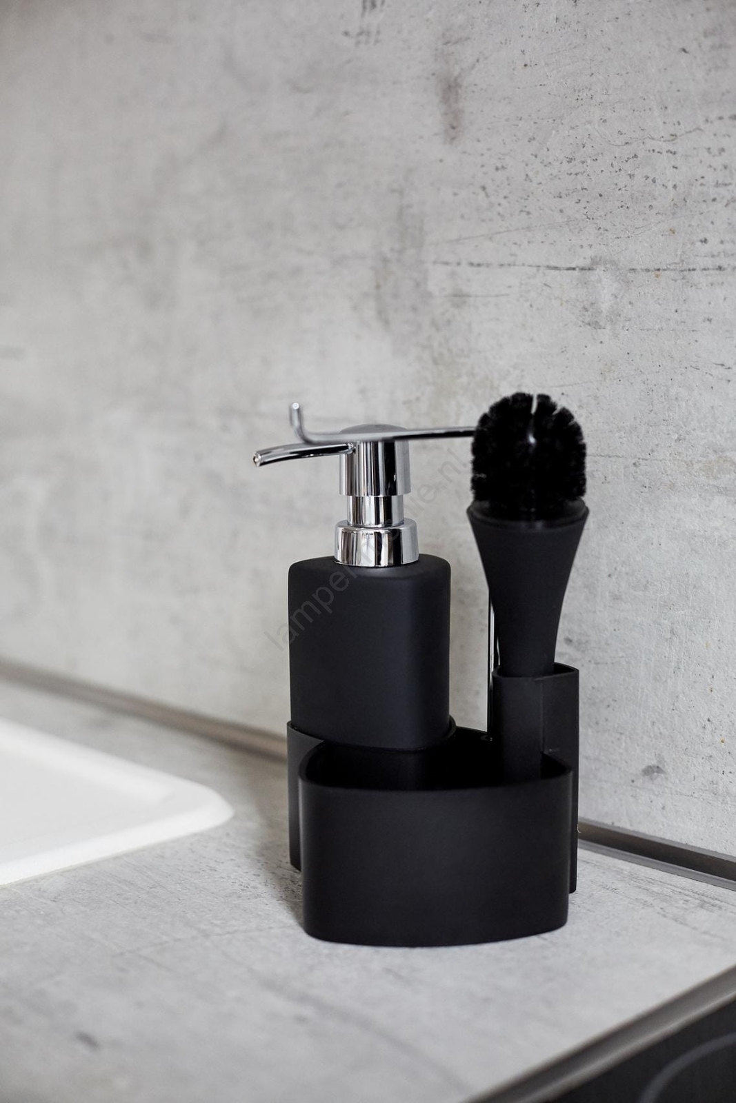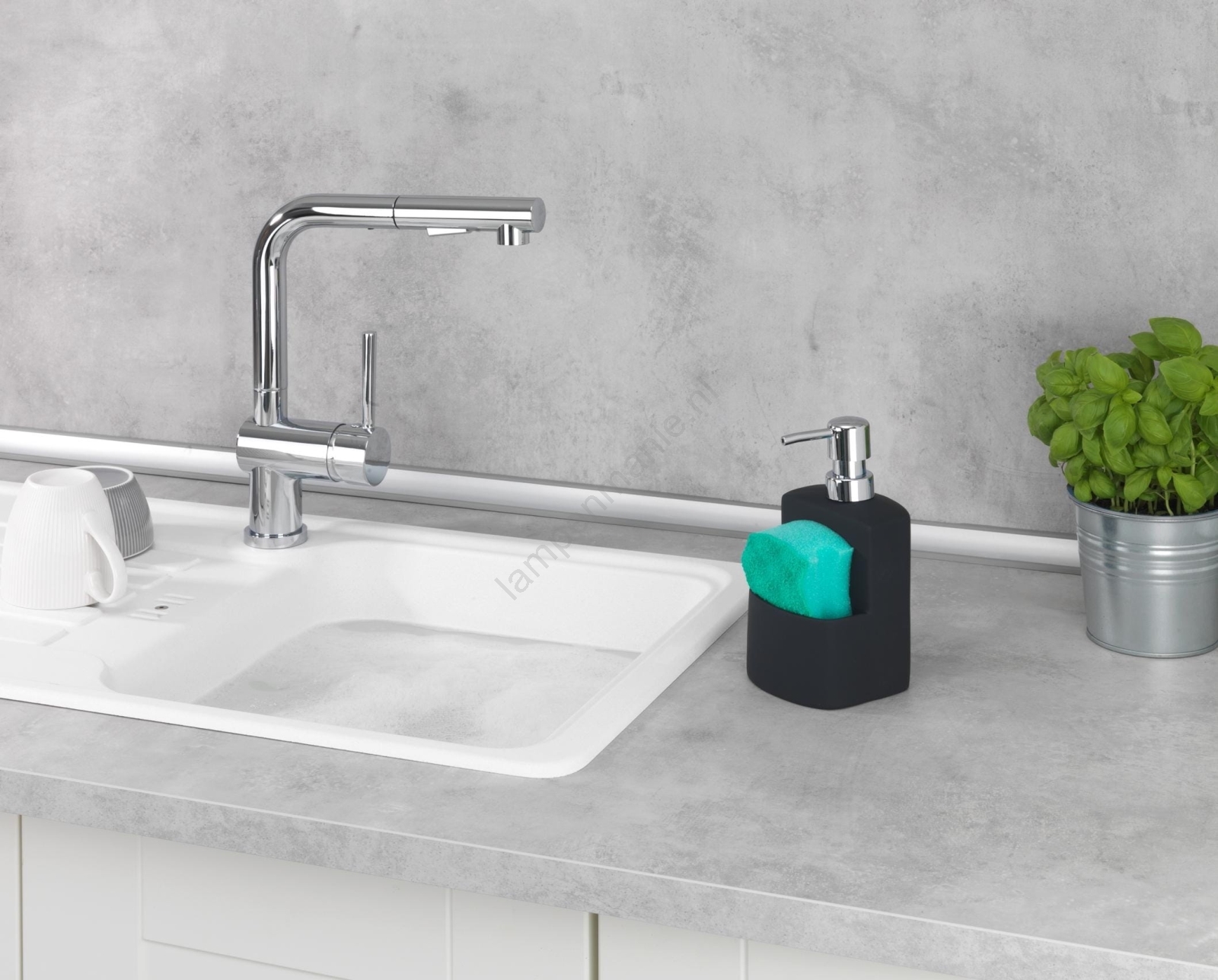 • Elegante dispenser voor afwasmiddel of vloeibare zeep in zwarte uitvoering.