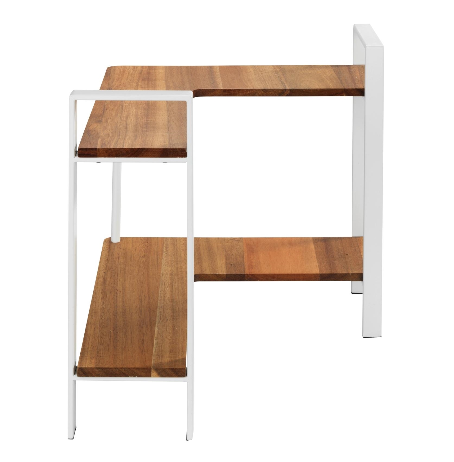 • Elegante combinatie van een wit metalen frame en planken van acaciahout.