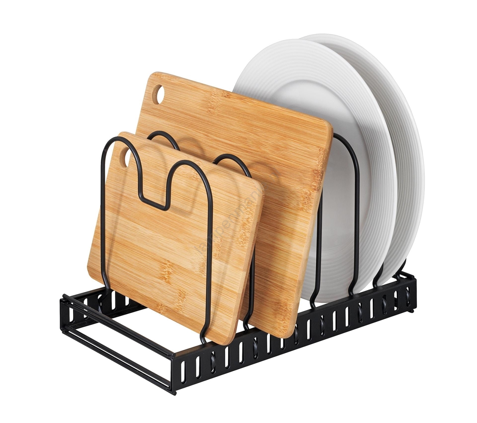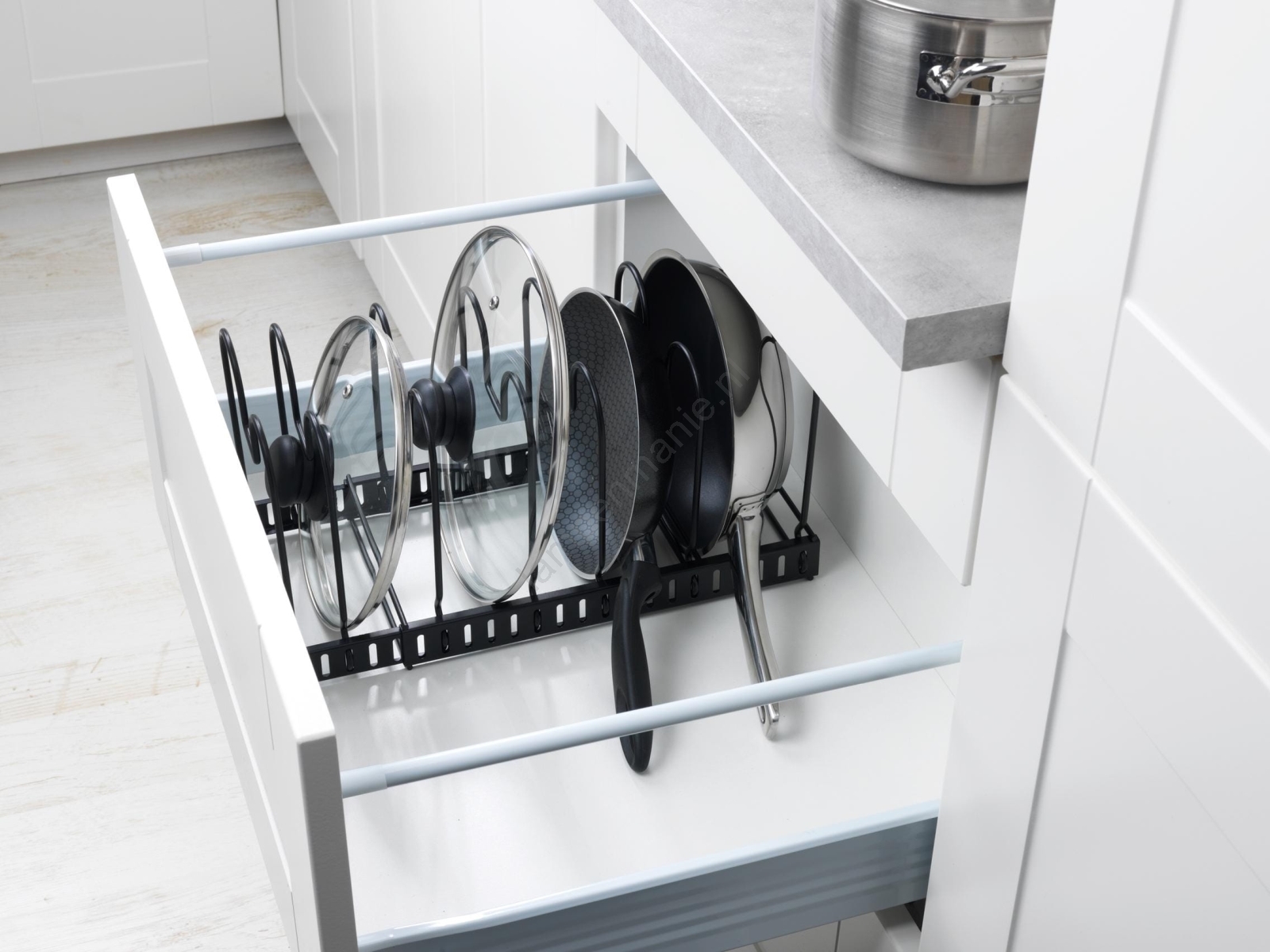 • Biedt ruimtebesparende en overzichtelijke opslag van deksels, pannen, bakplaten of snijplanken.