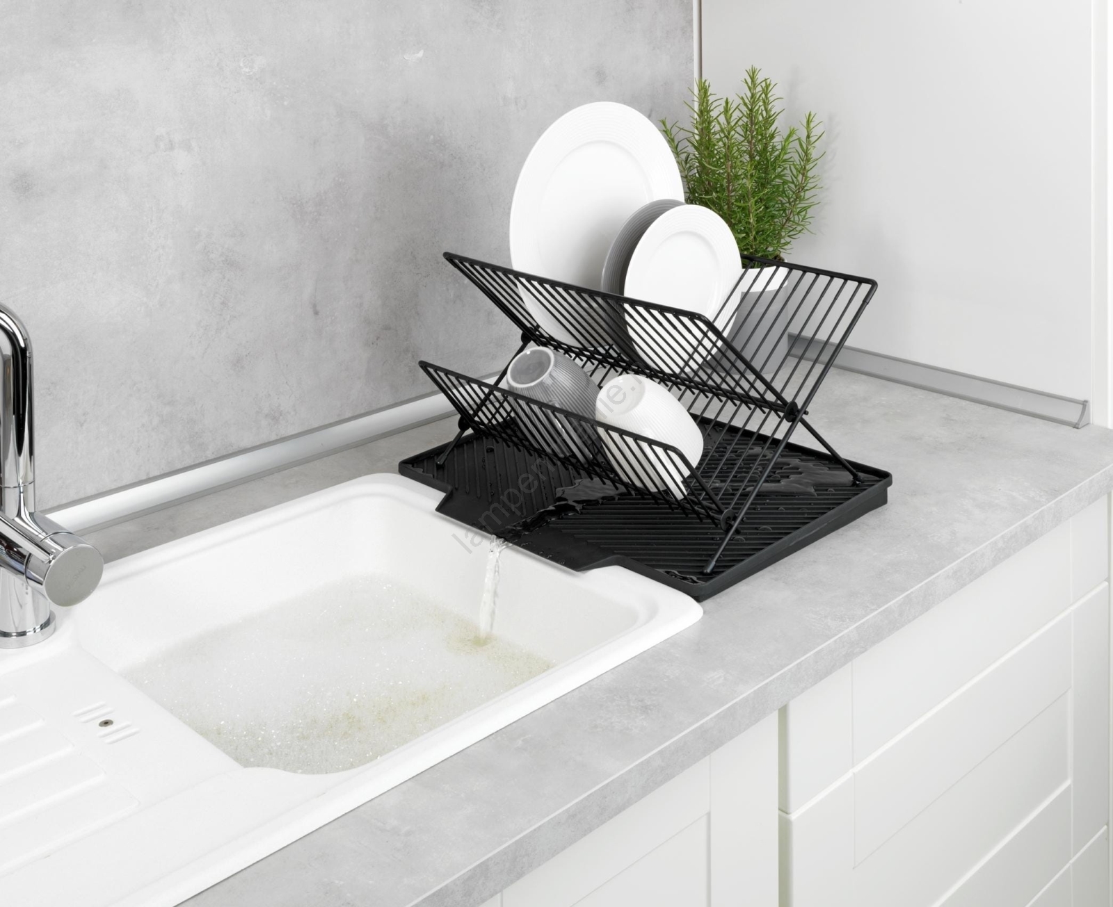 • Praktische afdruipmat met een afwasrek voor direct naast de gootsteen.