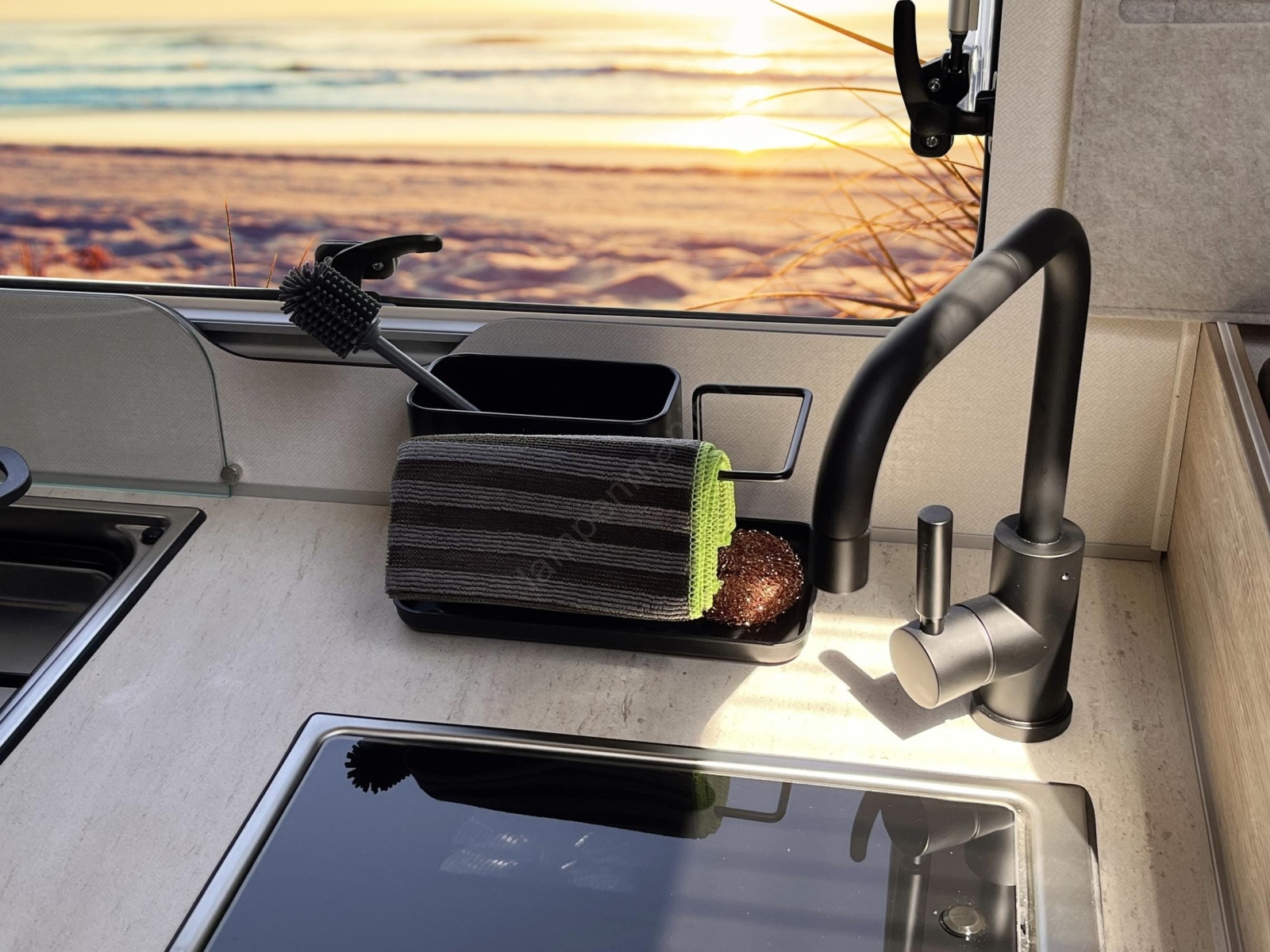 • Uitneembare roestvrijstalen bak – ideaal voor sponzen en borstels.