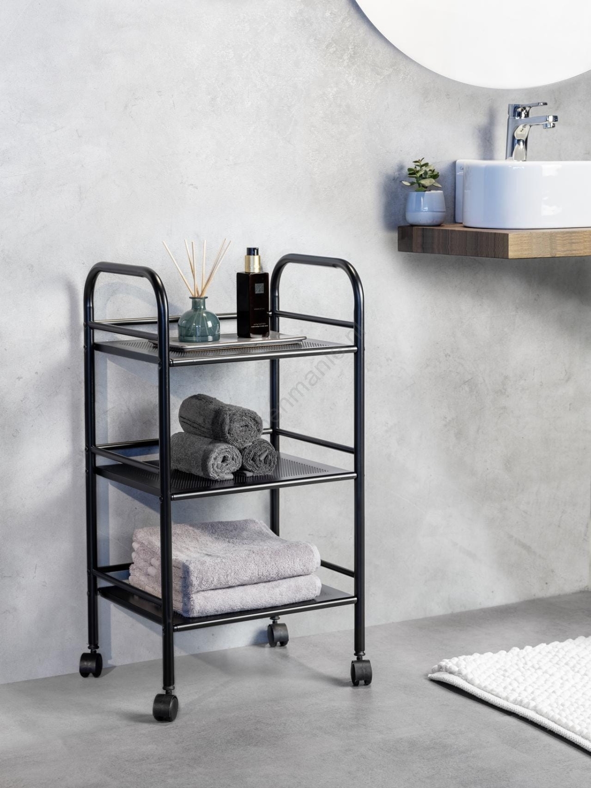 • Elegante badkamerwagen met drie planken voor praktische organisatie.