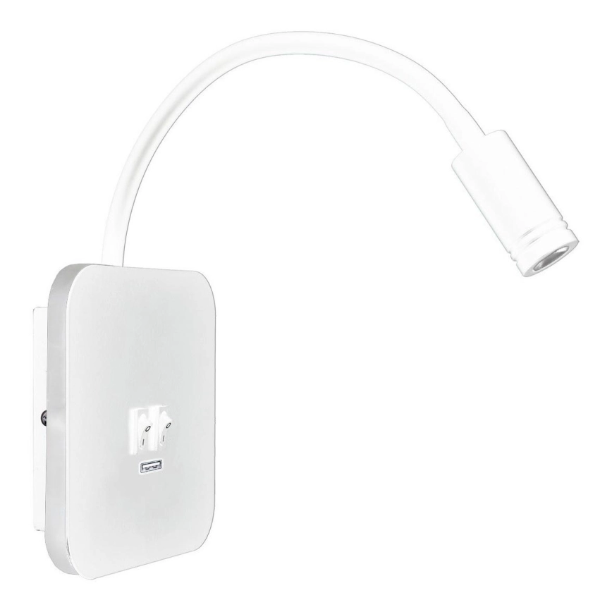 LED flexibele wandlamp met USB BASE LED/8W + LED/2W/230V wit