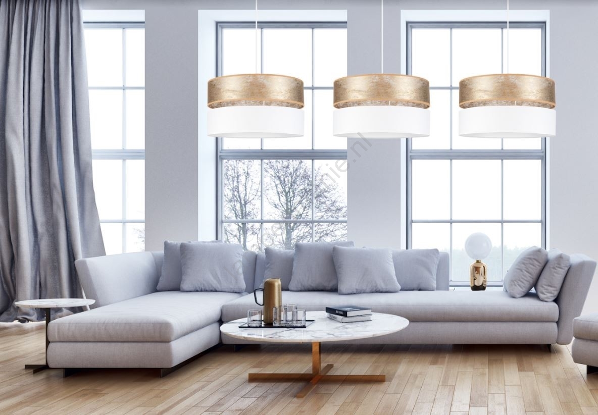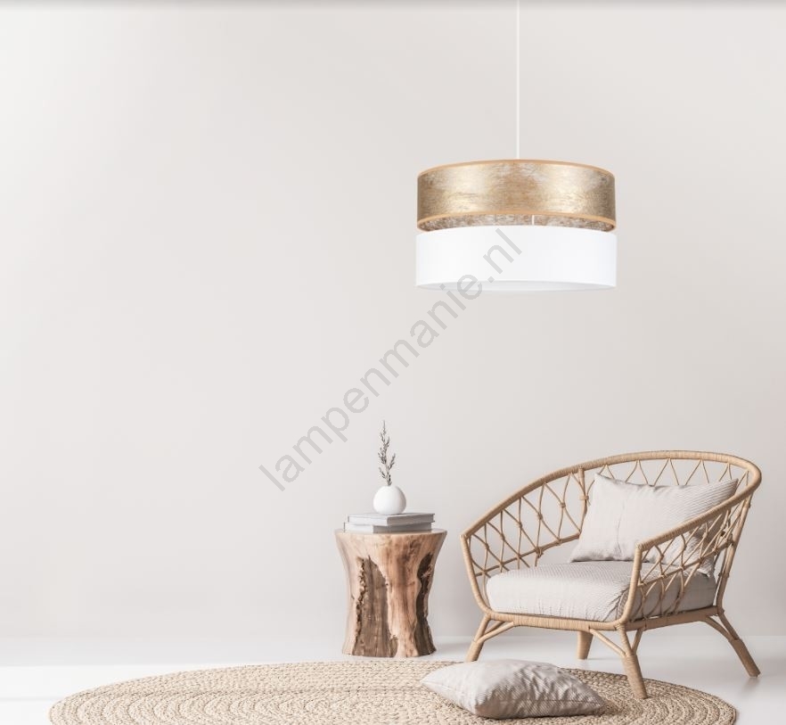 Witte Goudkleurige Hanglamp aan een koord LIMA 1x E27 / 60W / 230V kenmerkt een mooi en functioneel ontwerp.  Voor het licht is een lamp met E27 fitting geschikt. Hier kunt u andere lampen tegen voordelige prijzen kopen. U heeft een interessante aanwinst voor uw woning.