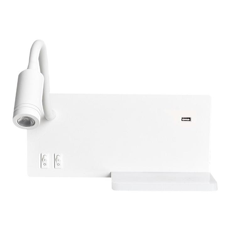 LED-wandlamp SHELF LED/4W+LED/5W+LED/2W/230V + USB-poort wit