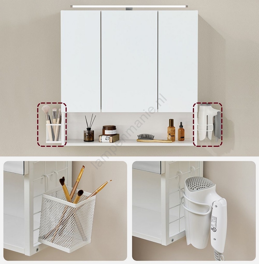 • De binnenplanken houden uw cosmetica en hygiëneartikelen binnen handbereik.