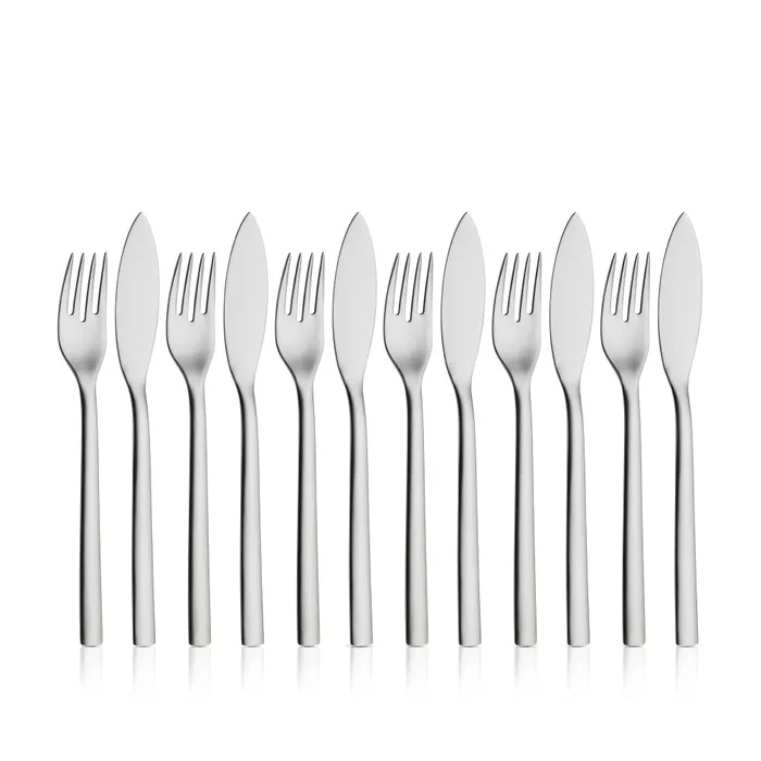 • Speciale set van 12 bestekstukken ontworpen voor het serveren van vis – bevat 6 messen en 6 vorken.