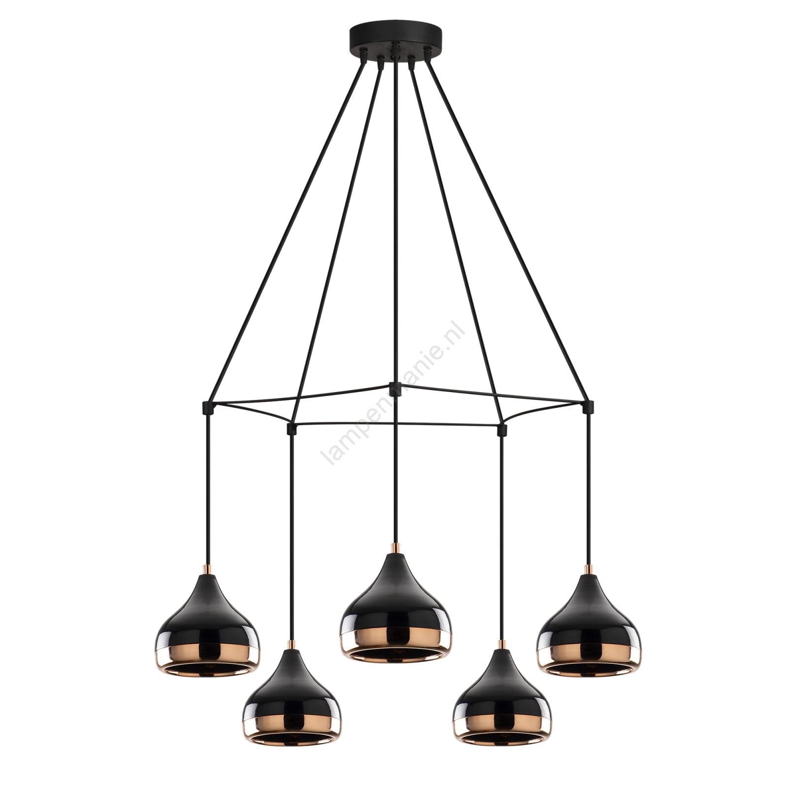 Hanglamp aan kabel YILDO 5xE27/40W/230V zwart/koper kenmerkt een mooi en functioneel ontwerp.  Voor het licht is een lamp met E27 fitting geschikt. Hier kunt u andere lampen tegen voordelige prijzen kopen. U heeft een interessante aanwinst voor uw woning.