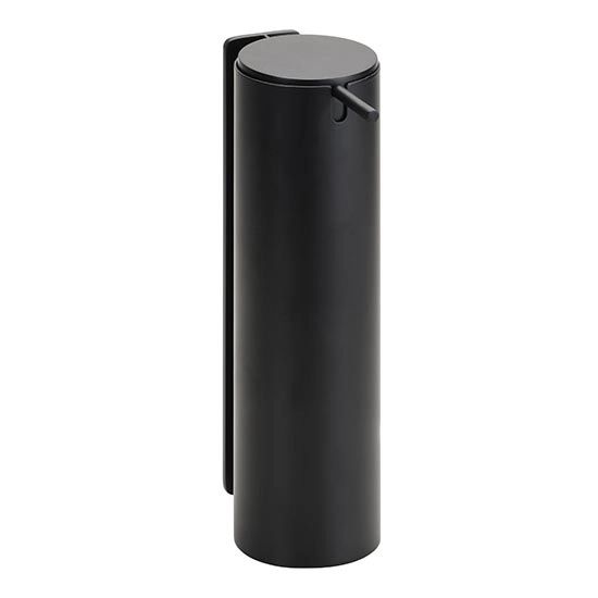 • Elegante zeepdispenser in zwarte uitvoering voor moderne badkamers.