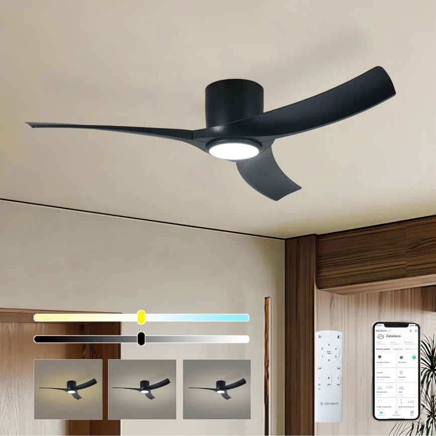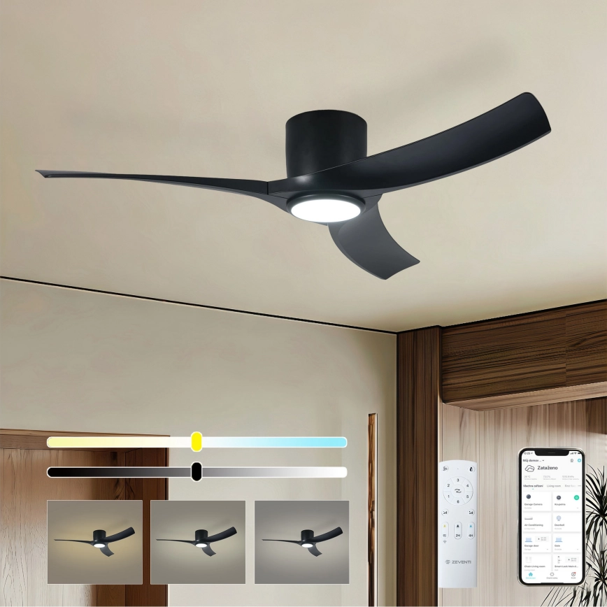 ZEVENTI - Dimbare LED-plafondventilator ORBITO LED/24W/230V 3000/4000/6000K Wi-Fi Tuya zwart + afstandsbediening