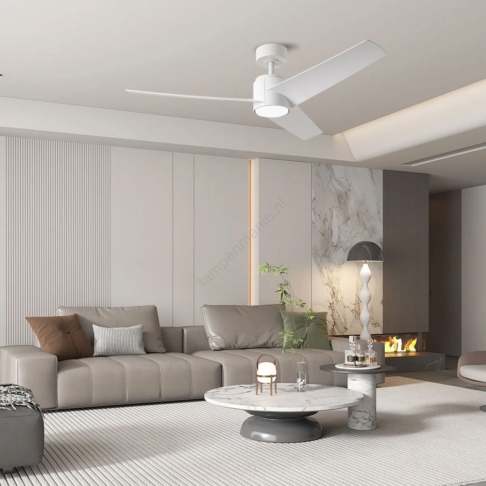 • Plafondventilator met LED-verlichting verfrist de ruimte tijdens hete zomerdagen.