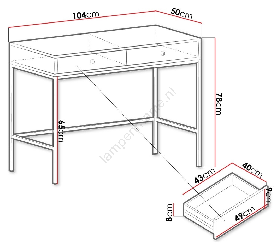 • Gemaakt van metaal en gelamineerd spaanplaat met een maximale dikte van 18 mm.