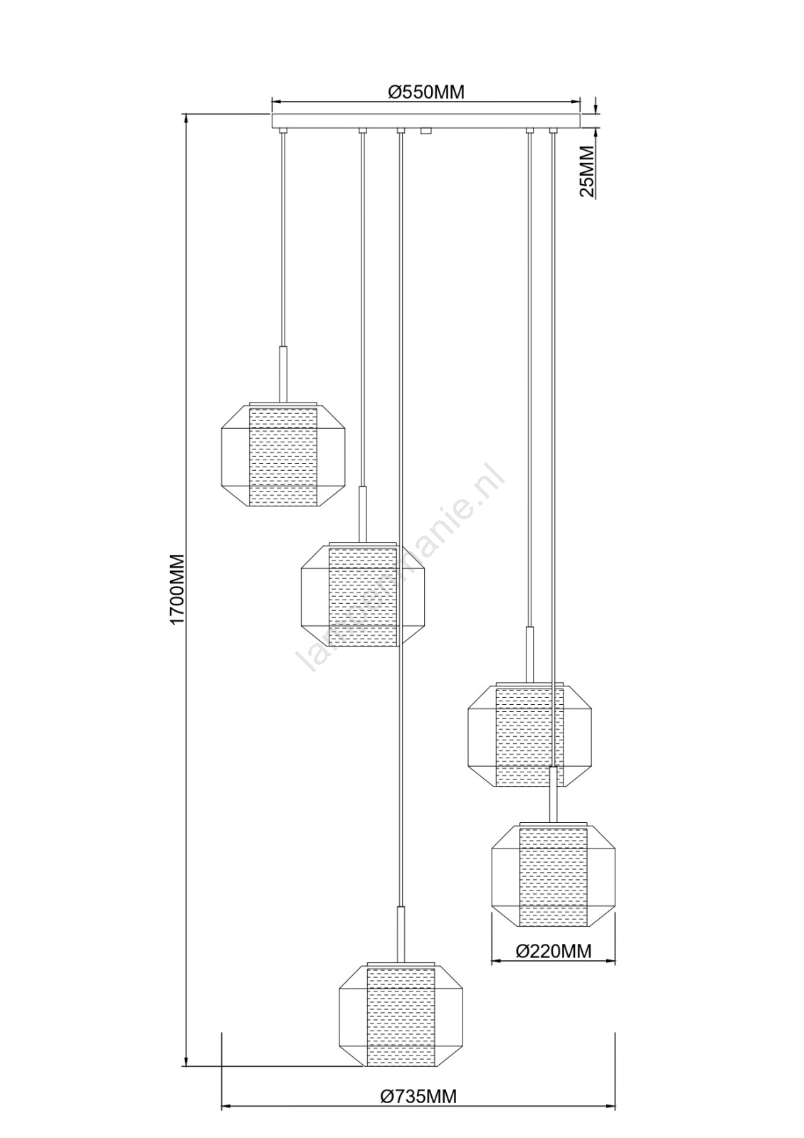 Zuma Line - Hanglamp aan kabel 5xE27/25W/230V Ø 73 cm goud/zwart kenmerkt een mooi en functioneel ontwerp.  Voor het licht is een lamp met E27 fitting geschikt. Hier kunt u andere lampen tegen voordelige prijzen kopen. U heeft een interessante aanwinst voor uw woning.