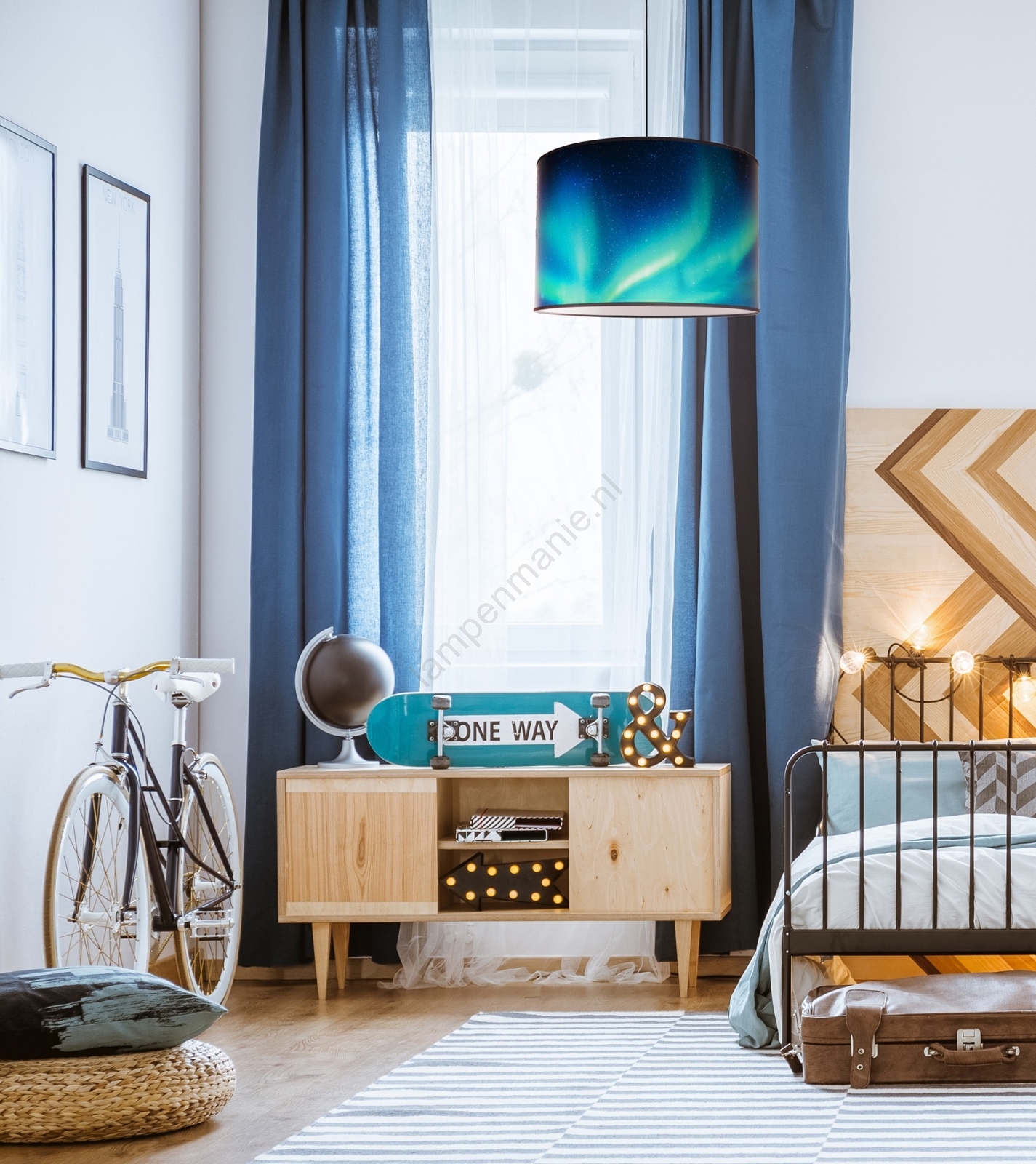 Duolla - Hanglamp aan een koord PRINT L 1xE27/40W/230V diameter 45 cm zwart/turquoise