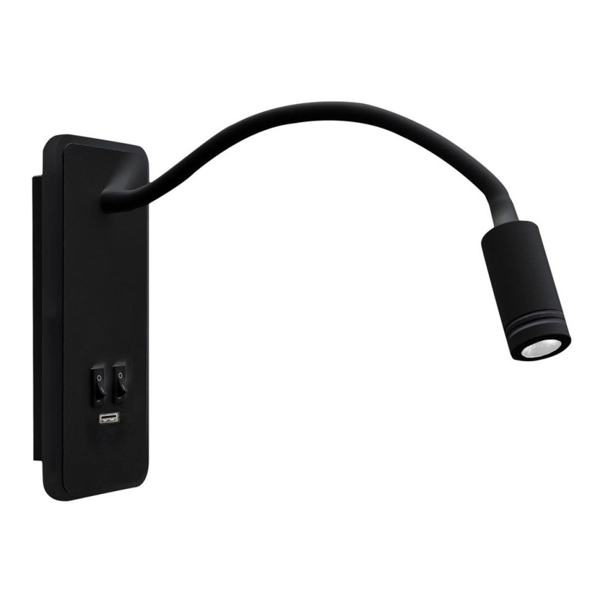 LED flexibele wandlamp met USB BASE LED/8W+LED/2W/230V zwart